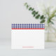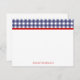 A flat notecard featuring a border of blue gingham with red trim at top. Personalize with your name in red at bottom.