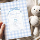 Elevate your baby shower celebration with our exquisite invitation, featuring a cottage core blue gingham pattern. This elegant piece showcases a coquette bow and a delightful rocking horse. Perfectly crafted to set a sophisticated tone for your event, this invitation not only conveys your joyous occasion but also adds a touch of timeless elegance that your guests will adore. Make your baby shower unforgettable with this stunning invitation that reflects both style and grace.