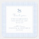 Add a charming finishing touch to your baby shower favors with this blue gingham thank you sticker. Designed with a sweet checkered border, a rocking horse illustration, and elegant lettering, it’s perfect for sealing envelopes, decorating gift bags, or personalizing party favors. A timeless design to celebrate your baby boy’s special day.