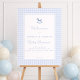 Greet your guests in style with this charming blue gingham baby shower welcome sign. Featuring a sweet rocking horse illustration and soft checkered border, it sets the perfect tone for a baby boy celebration. A warm and elegant detail to make your shower feel extra special.