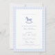 Blue Gingham Rocking Horse Boy Birthday Invitation