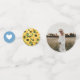 Rustic blue gingham bbq baby shower table confetti with sunflowers, blue gingham, a cute heart, and two photos.