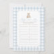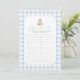 Invite friends and family to participate in a game of 'baby name race' with this elegant blue gingham teddy bear baby shower game card.