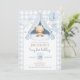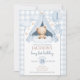 Blue Gingham Teddy Bear Balloon Boy 1st Birthday Invitation