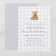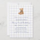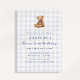 This adorable first birthday invitation features a sweet watercolor teddy bear set against a soft blue gingham background for a timeless and charming design. The playful “Beary First Birthday” headline adds a cute teddy bear themed touch perfect for celebrating a little one’s first birthday. The clean layout keeps the invitation elegant while the classic gingham pattern creates a warm and inviting party style. Easily personalize with your child’s name, date, location, and RSVP details to create a beautiful custom birthday invitation.