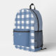 Blue watercolor gingham pattern printed backpack with optional personalization.