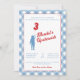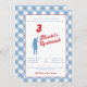 A classic blue gingham and red upsherin invitation, with a blue gingham pattern on the back.