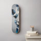 Half of a blue and gray giraffe printed on a skateboard.