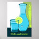 Blue Glass & Carafe - Water and Lemon! Poster