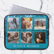 Blue Glitter 6 Photo Collage with Name Laptop Sleeve