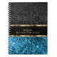 Blue Glitter and Black Damask Notebook