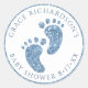 Add a stylish sparkle to your baby shower favors with this charming blue glitter-look sticker featuring tiny baby feet. Ideal for sealing cookie bags, favor boxes, or thank you envelopes, this personalized sticker is a sweet way to celebrate the mom-to-be. Customize with the guest of honor's name and shower date to create a polished keepsake that guests will love.