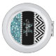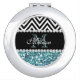 BLUE GLITTER BLACK CHEVRON MONOGRAMMED MIRROR FOR MAKEUP