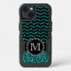 Blue Glitter Chevron Monogrammed Defender Otterbox iPhone Case
