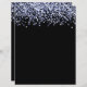 Design features faux blue glitter with sparkles on a black background.