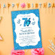 Blue glitter cute vibrant sparkling 7th birthday invitation