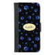 Blue glitter dog paw pattern, Monogram iPhone Wallet Case