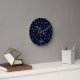 Blue glitter dog paw pattern, Monogram Round Clock