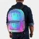 Blue glitter drip school backpack with cool fluorescent, neon pink, purple and light blue background. Personalize it by adding your name. Great birthday or Christmas gift for women and girls.