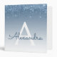 Blue Glitter Drips Sparkle Monogram 3 Ring Binder