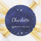 A classic navy blue background, the blue color is uneven. Decorated with faux glitter dust. Personalize and add your first name, monogram initials and full name.