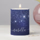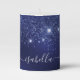 A blue background. The blue color is uneven. Decorted with faux glitter dust. Personalize and add a name. The first name is written with a modern hand lettered style script with swashes.
