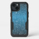 Blue glitter phone case. The glitter is not real glitter but a printed effect.