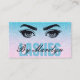 Make a bold statement with this glitter gradient "Lashes" business card design, perfect for lash technicians, beauty salons, or anyone in the cosmetics industry. The shimmering backdrop transitions from cool blue to soft pink, evoking a sense of elegance and modernity. The striking black graphic of eyes with luscious lashes draws immediate attention, while the large text "LASHES" ensures your message stands out.
