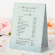 Table Tent Price List featuring a chic script, modern typeface, and blue glitter effect.