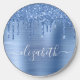 Custom elegant and girly wireless charger with blue faux glitter drips on a blue brushed faux metallic background. Monogram with your name in a stylish trendy white script with swashes.