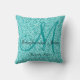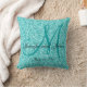 Personalized Blue Aqua Teal Glitter printed Monogrammed Throw Pillow with bride and groom names and wedding date. Makes a great gift for newly weds. Great for your bedroom, favorite chair, as fun decor in your family room or formal decorative addition to your living room. Customize with your names, monogram initial and wedding date. Elke Clarke©