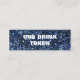 Blue Glitter Names Date Wedding Drink Ticket. Easily personalise text as required including your names and wedding date. With a faux glitter background in dark blue on each side.