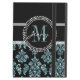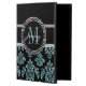 Blue Glitter Printed, Black Damask Personalized Cover For iPad Air