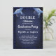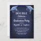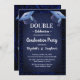 Blue Glitter Two Graduates Double Graduation Party Invitation