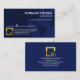 Overleaf, in a lighter blue cover, the gold logo is at the top followed by your prestigious name, contact details and a slogan caption to publicize your services.