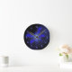 An abstract butterfly in electric blue, nearly glows on a midnight blue background. The clock numbers are a template which you can clear if you'd prefer the butterfly alone. Note: This clock does actually not glow in the dark.