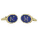 This pair of cuff links for him features his monogram in gold and placed on a dramatic gradient royal blue background that almost glows! Bright, colorful, and very elegant.
