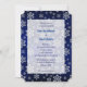 Pretty silver snowflake images on a dark blue background make an elegant border on this winter wedding invitation. Your wedding information is placed on a semi transparent field which allows the snowflake images to show through. If you'd like to change the size, color, font or location of the text, you may do so by choosing "Customize". The back of the invitation is a matching gradient solid color blue.