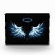 Light, artistic, blue angel wings on a black background. Angel wings.