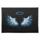 Blue Glowing Angel Wings on black background Cloth Placemat