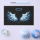 Light, artistic, blue angel wings on a black background. Angel wings.