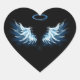 Blue Glowing Angel Wings on black background Heart Sticker