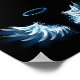 Blue Glowing Angel Wings on black background Poster