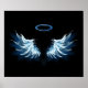 Blue Glowing Angel Wings on black background Poster