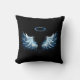 Blue Glowing Angel Wings on black background Throw Pillow