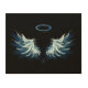 Blue Glowing Angel Wings on black background Wood Wall Art