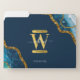 Blue & Gold Agate Geode Glitter Monogram File Folder