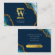 Blue & Gold Agate Geode Glitter Monogram Marble Business Card