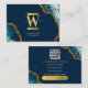 Blue Gold Agate Geode Glitter Monogram QR Code Business Card