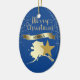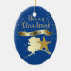 Send them something pretty from the beautiful state of Alaska! On the front of this ornament is a shiny gold silhouette image of the state, with a darker gold star imposed over it. Above the state and star image is the glittery message MERRY CHRISTMAS in script, and a banner with the text in blue ALASKA. Around it all are gold snowflakes. The images and text are placed on a deep blue background. The back of the ornament has text fields in light gold for you to customize, and a second gold star image. You may change the background color, if you'd like, by choosing CUSTOMIZE.
